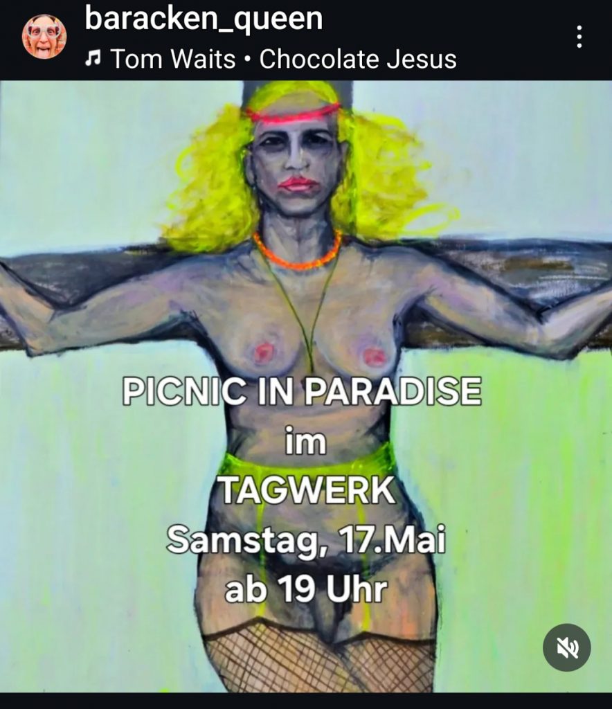 That SWEET JESUS was exhibited here was a funny coincidence. I had submited her to the Exhibition Frauentag in the Wiesbaden Rathaus. But, as I understood she could be shown there, because of her display of her penis. Fortunatly Frau Klein from the Frauenmuseum was at the curation and wanted S.J. for their show. „Frauen am Kreuz“. The history of that theme was so fitting for S.J. , as if I´d painted her for excactly this occasion:)